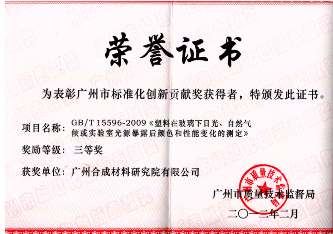 “广化测评”广州合成材料研究院有限公司近年来主导和参与国际、国家、行业主要老化及寿命评估试验方法,累计主导制修订并发布的国际、国家、行业、团体、企业等各级标准和技术规范累计 200 余件,其中国际标准 10件、国家标准 120 件;