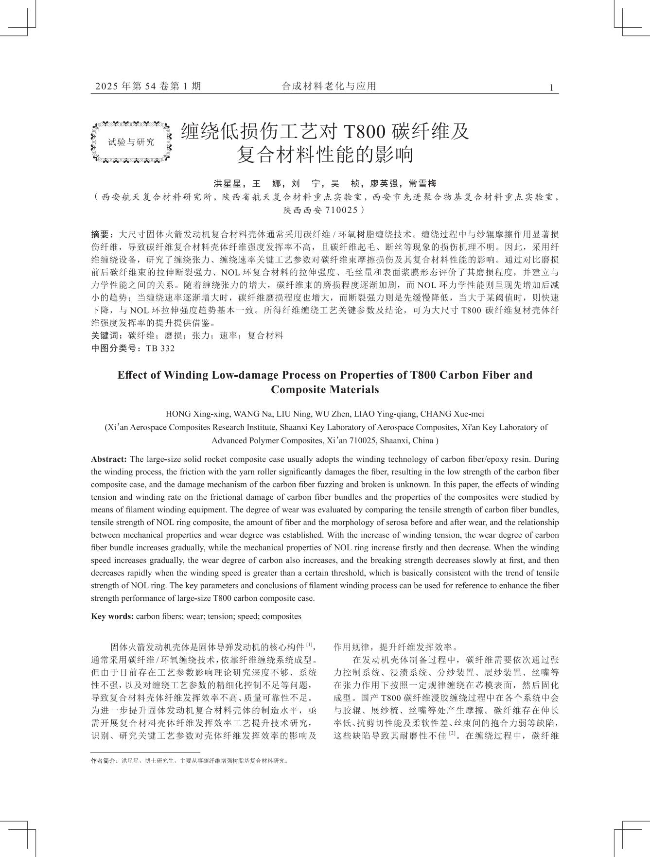 推荐理由:这篇论文聚焦 T800 碳纤维缠绕低损伤工艺,揭示张力、速率对性能的影响,数据详实,为大尺寸复合材料壳体制造提供关键参考,具工程实用价值。