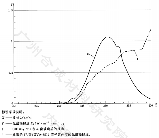 • 1B型灯 (UVA-351):其光谱模拟了太阳光透过普通窗玻璃后的紫外部分(参见标准中图A.2)。主要适用于评估用于室内或汽车内饰等非直接户外曝露环境的涂层。