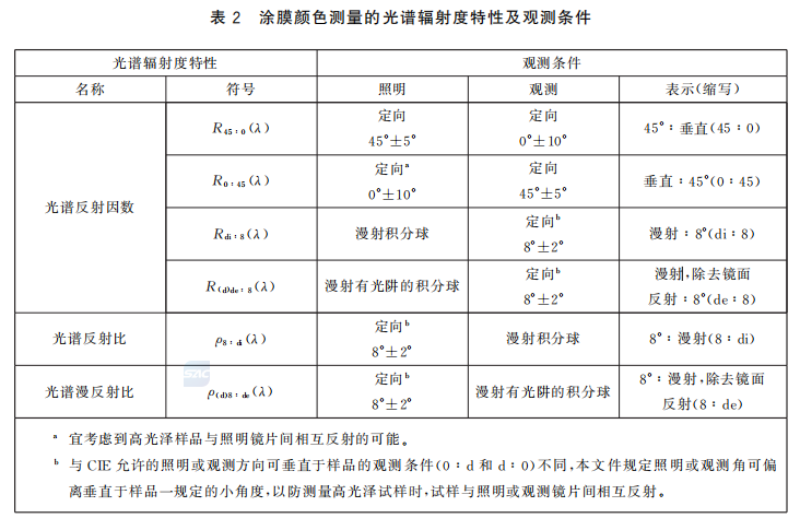 这是本次修订的重点强化部分。标准通过表2系统梳理了六种照明与观测几何条件(如45°:0°、d:8°等),并依据涂膜表面特性(光滑/有纹理、高光泽/低光泽)和测量目的(是否包含镜面反射),在第8章给出了明确的选择指南: